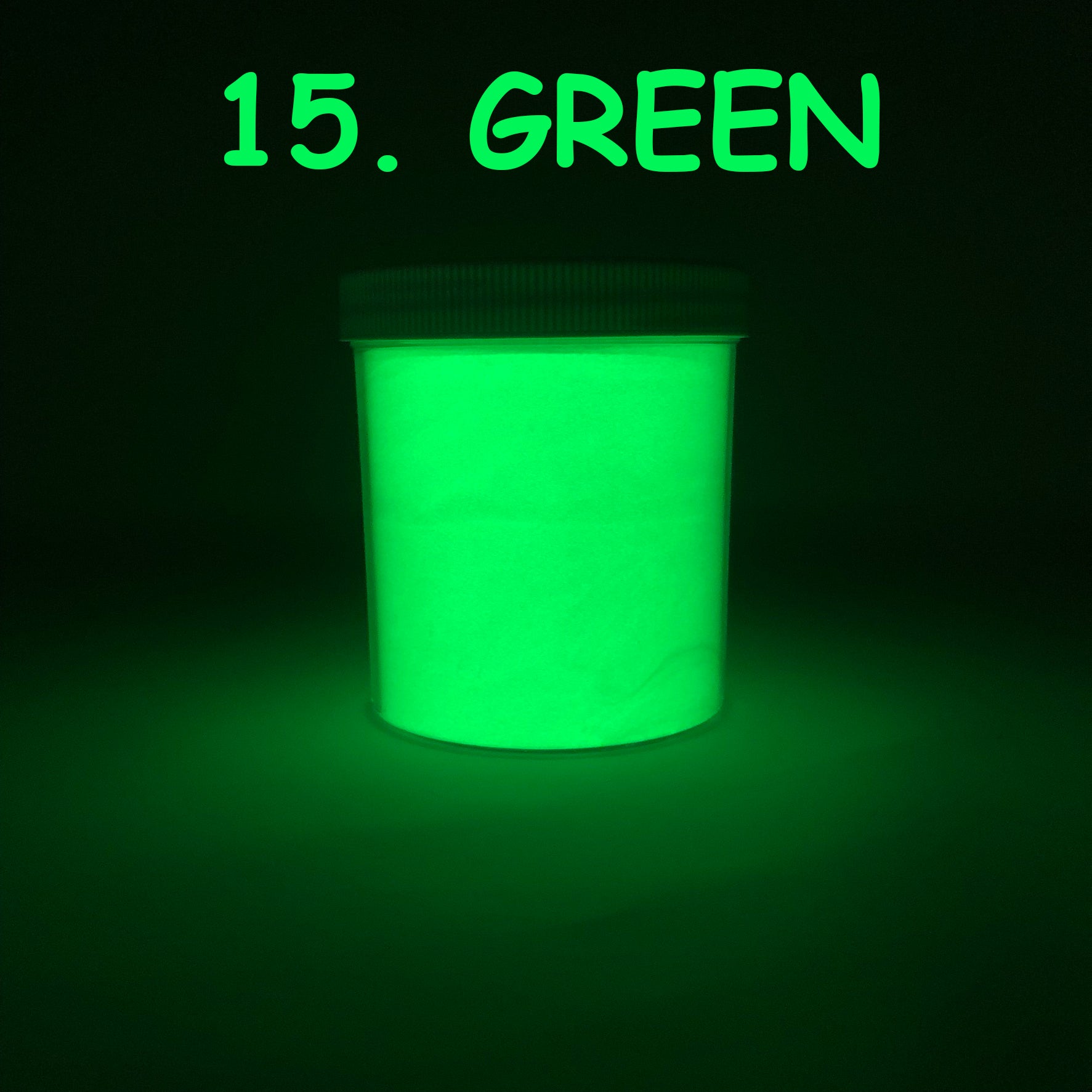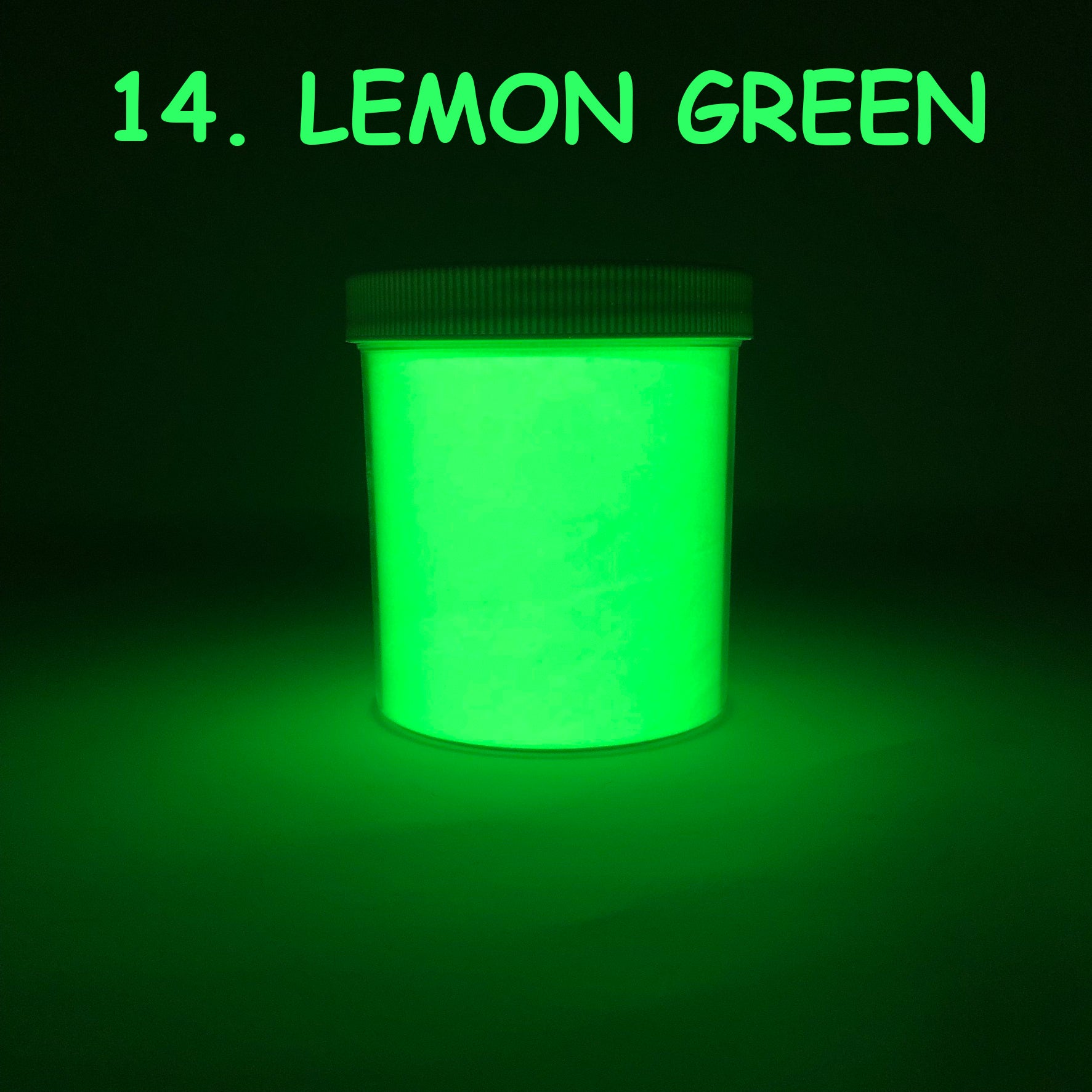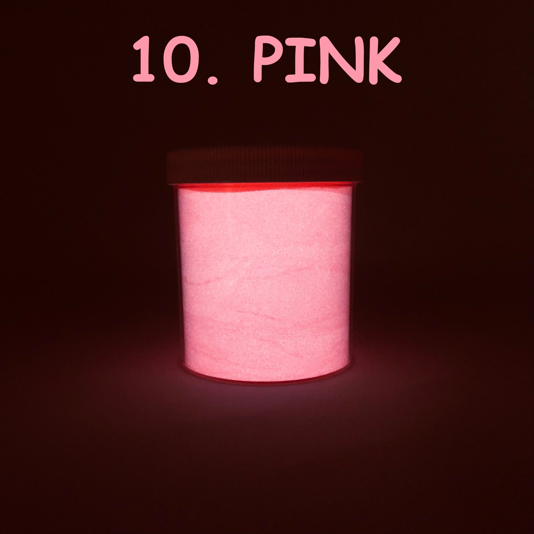 10g Bulk Pack: For those larger projects or high-demand applications, indulge in our 10g bulk pack. Each pack contains 1⁄4 oz of glow in the dark pigment powder, conveniently stored in clear plastic round wide-mouth jars with white caps.